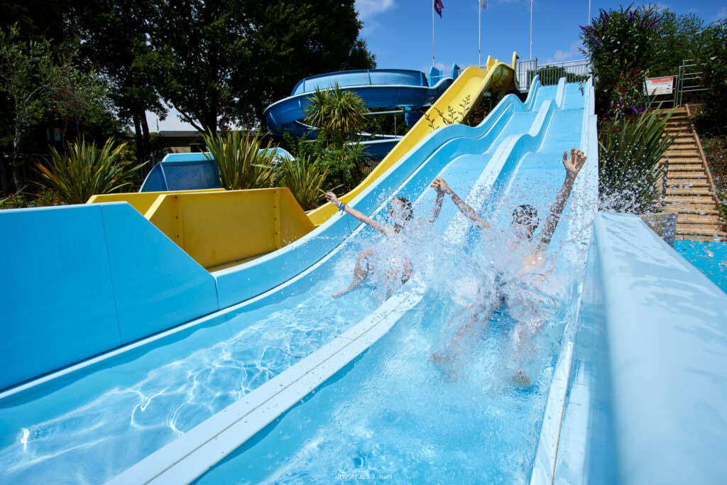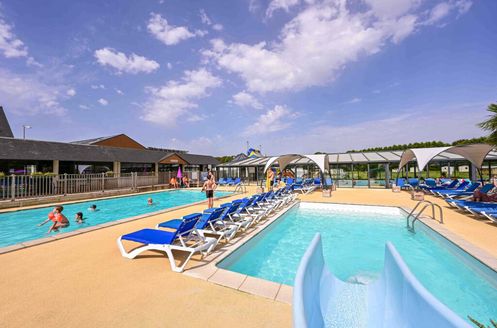 Dans notre camping du Morbihan avec piscine, vous trouverez trois bassins chauffés à 27°C : une piscine pour les baignades, un bassin de réception pour les glissades et un petit bain ludique pour les plus petits. Notre parc aquatique représente plus de 120 mètres de descente sur 5 pistes, avec des départs à des hauteurs différentes pour les amateurs de sensations fortes.